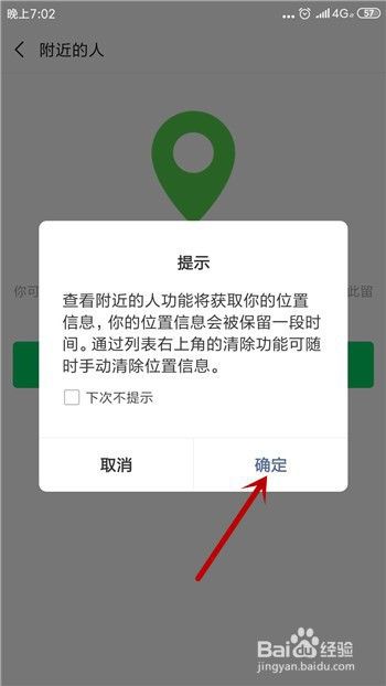 在查看附近的人之前会给我们一个小提示,了解后点击【确定】。