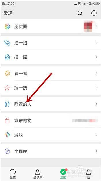 然后在发现界面里就能看到【附近的人】,点击打开附近的人。