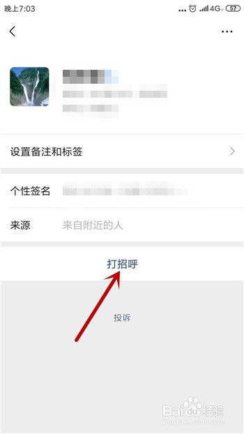 然后会打开这个人的详细界面,点击下方的【打招呼】。