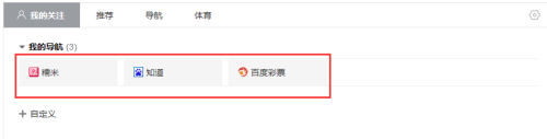 在百度首页,可以自定义我的导航,可以添加自己喜欢的网站信息,在推荐栏里可以设置自己关注的频道信息。设置之后关注的信息更具有精确性。下面就来介绍下如何设置