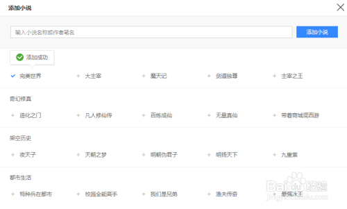 点击添加进入小说列表中,可以选择自己喜欢的小说到关注列表中