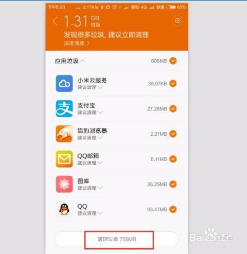 垃圾清理完后,重启手机清理的效果会体现出来。