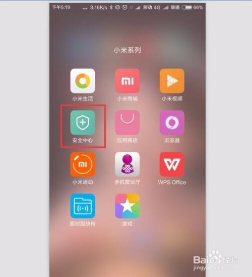 在红米Note3手机上找到安全中心。