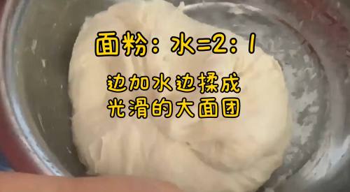 1将面粉和水2:1加入搅拌,揉成光滑大面团。