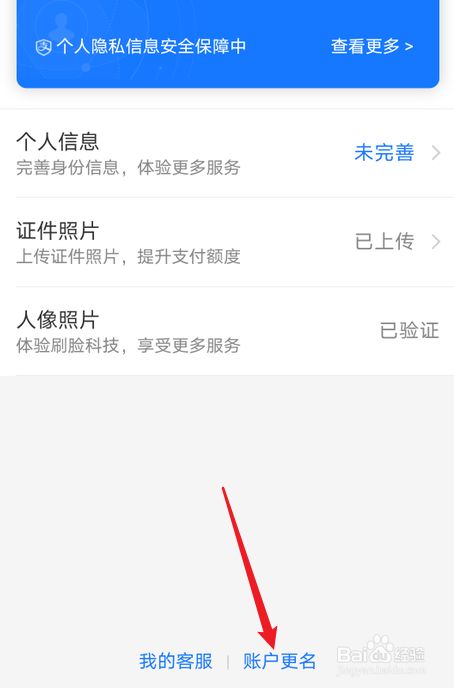 之后,在页面底部点击账户更名。