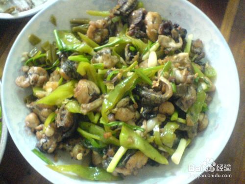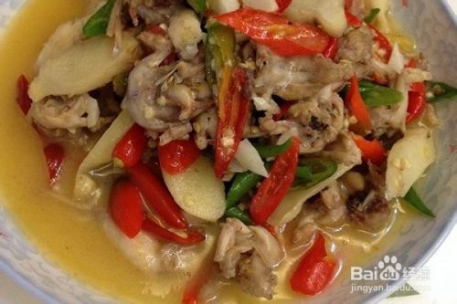 最后在锅中倒入适量的油,放入小米辣和姜丝,煸炒一下之后倒入清洗干净的角蛙,然后翻炒一下,炒熟之后再放入鸡精和花椒粉就可以盛入盘中,这道干煸角蛙就制作完成了。
