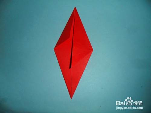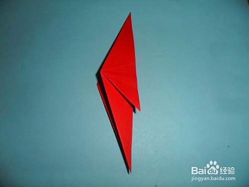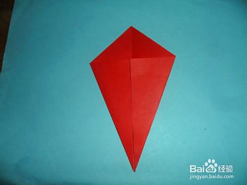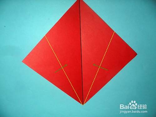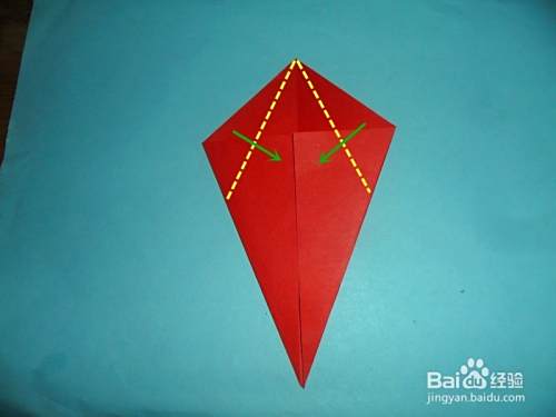 从上面顶角处,左右两边分别沿虚线向里折叠。
