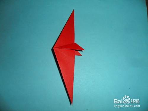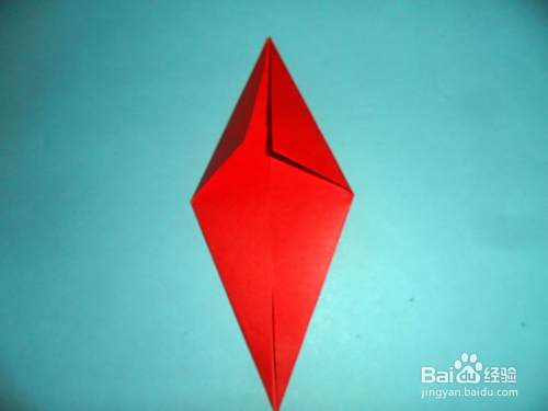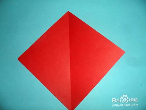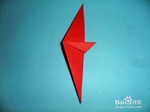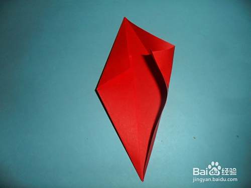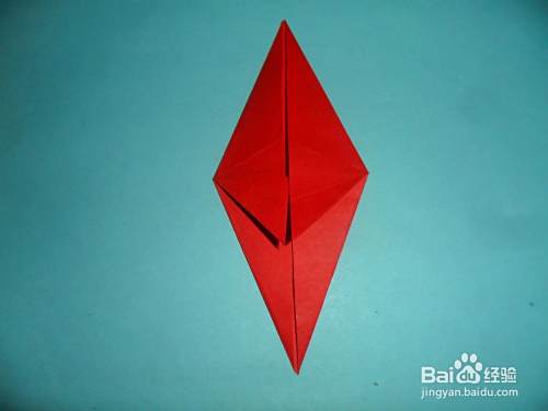从下面顶角处,左右两边分别沿虚线向里折叠。