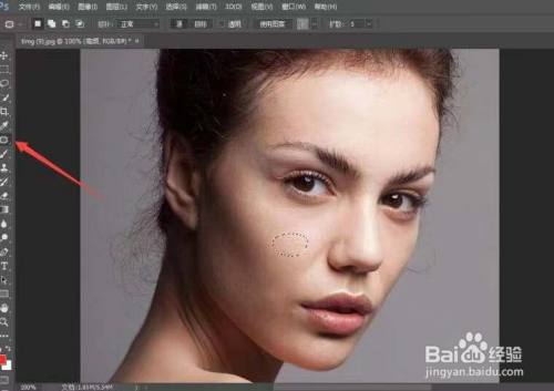 用修补工具,圈出瑕疵位置,拖到皮肤好的地方,使高频层皮肤变得光滑。