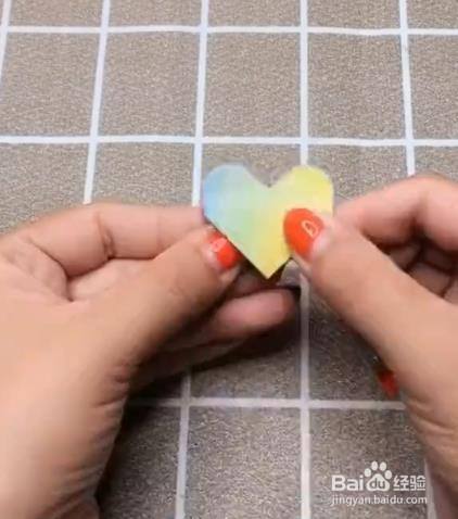 准备一个正方形的小彩纸,按着脚对折起来,剪出一个心形,按就此方法多做出几个心形。