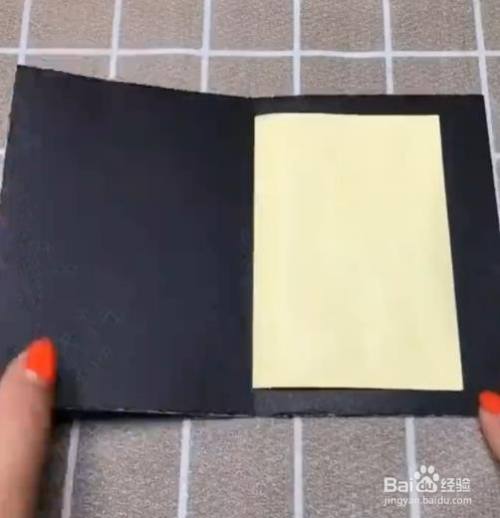 首先我们准备一张黑色的纸,从中间对折起来,然后拿出一张彩纸夹在黑纸的里面。