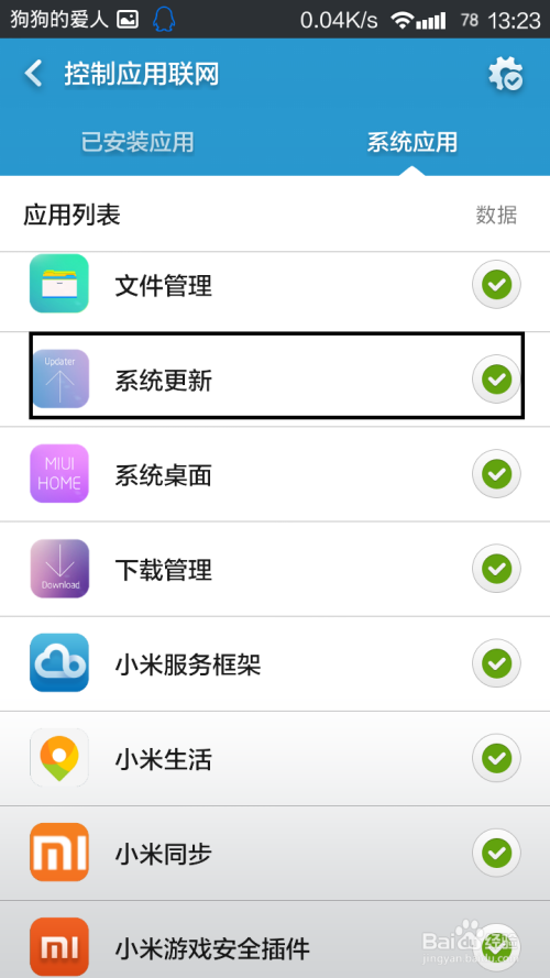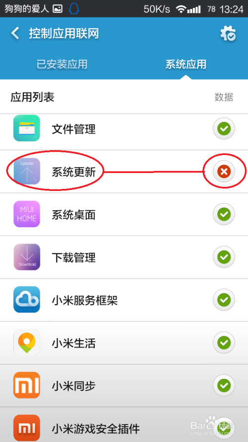 在系统更新这一栏打叉,控制系统更新不联网,这样就不会提示你更新系统啦