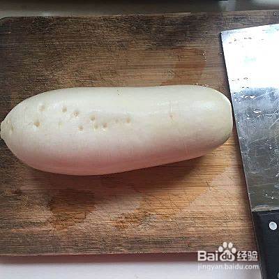 首先,我们取出一根白萝卜,将它用水洗干净后去皮。