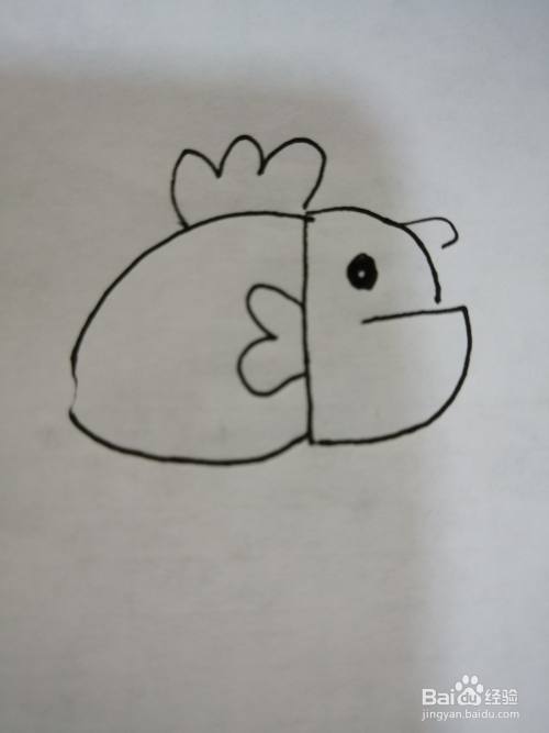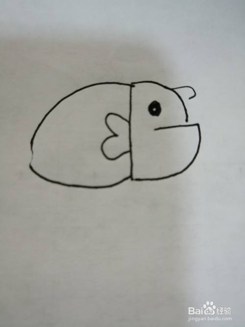 第五步,接着继续在简笔画小鱼的身体里面画出一个小鱼鳍。