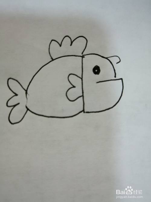 第六步,接着继续画出简笔画小鱼身体上的鱼鳍。