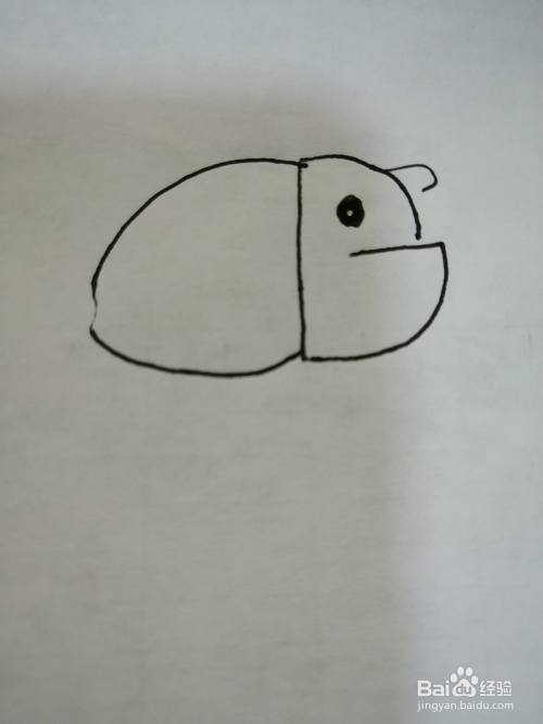 第二步,接着继续画出简笔画小鱼的一只小黑眼睛。