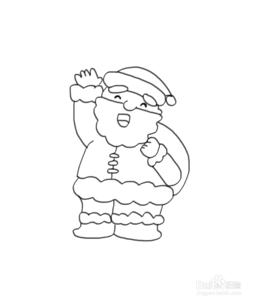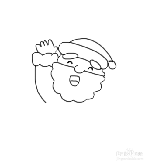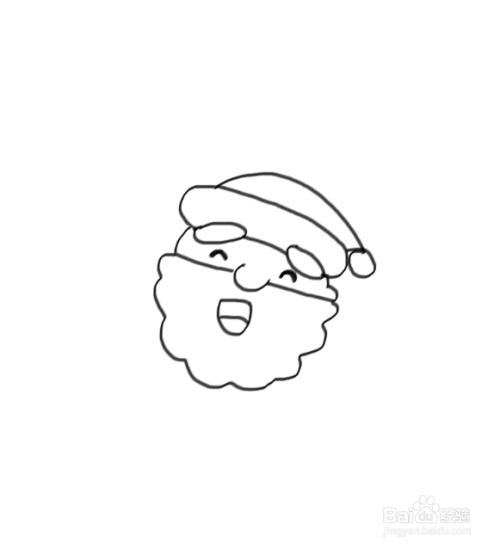 画上圣诞老人的大胡子和开口大笑的嘴巴。
