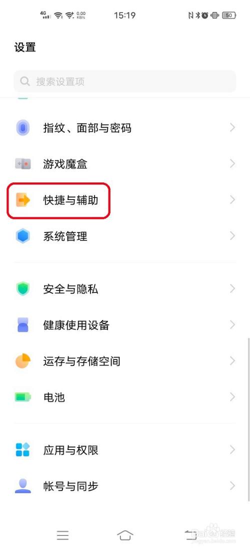 打开手机设置,点击“快捷与辅助”进入设置。