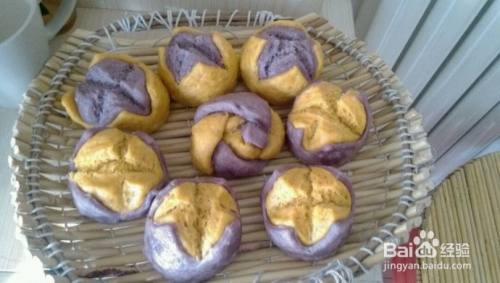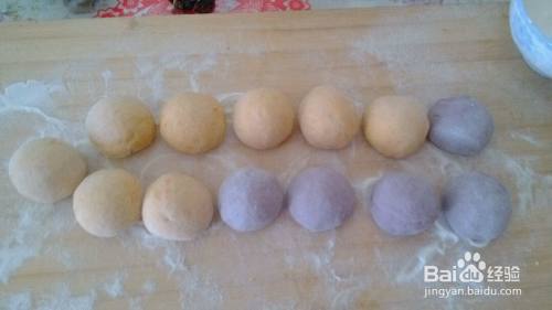 将南瓜、紫薯洗净去皮,上锅蒸熟。我用的高压锅省事快捷。完事把水控净,放凉备用。 准备好面粉,我家平时都是全麦粉,肠胃不好的适当加一些白面,我这里加的是颗粒粉,不粘手。南瓜里我放了500克全麦粉,100克颗粒粉。其余的面粉全放紫薯里。安琪酵母我用的小袋的,一袋能省发2kg面粉。我每种面粉里放一半酵母,和好面团后省发。