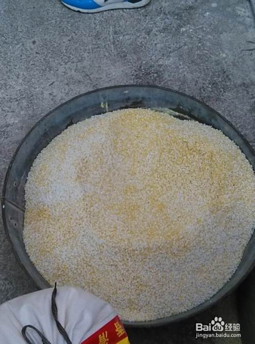 将糯米和大黄米用水淘干净,放在袋子里一个小时待加工