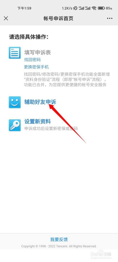 点击辅助好友申诉的选项,输入QQ回执编号即可。