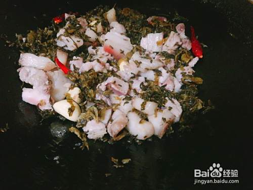 3.再把梅菜干倒下去翻炒片刻。