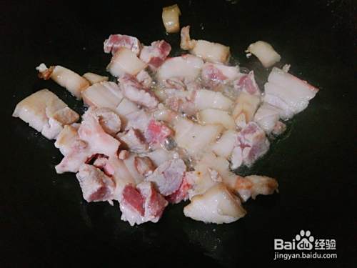 2.先把五花肉小火煎出少量油。