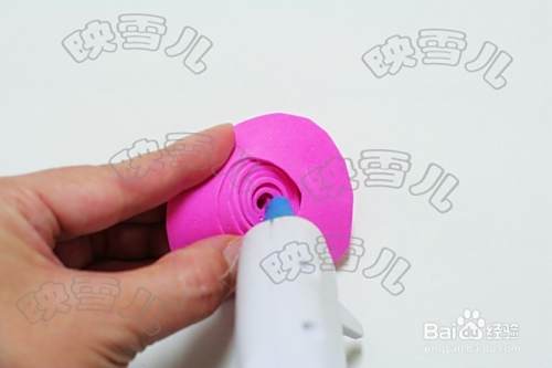 在底部挤些热溶胶,把海绵纸卷粘在上面。