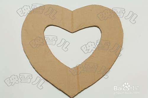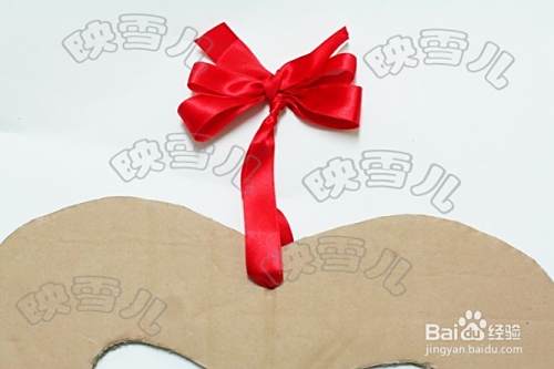 在心形纸板上用剪刀扎洞,并穿上丝带。