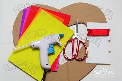 瓦楞纸,海绵纸,熔胶枪,丝带,剪刀等。