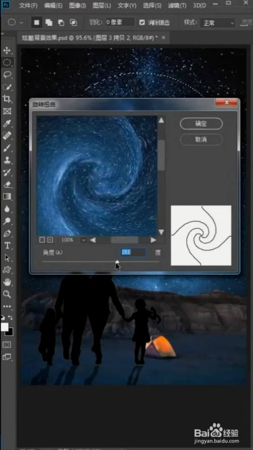 在弹出来的对话框里,拖动角度的滑块,达到理想效果,点击确定即可。