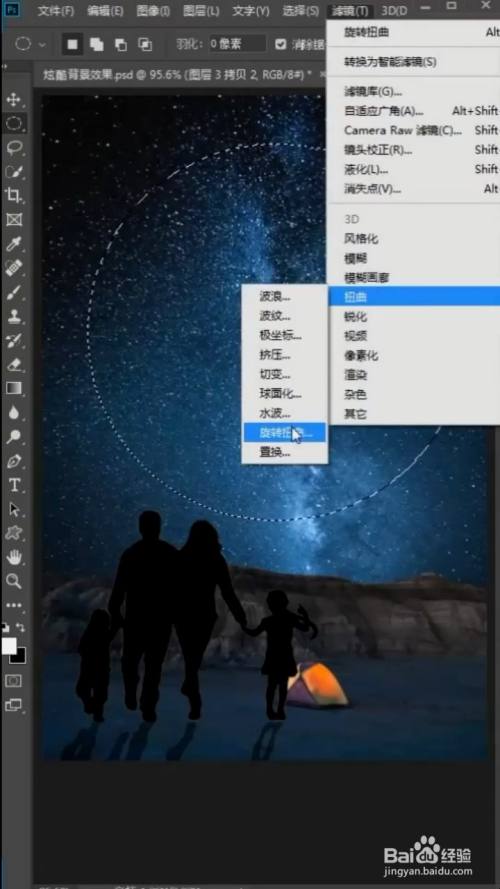 点击菜单栏的滤镜,然后选择扭曲选项下的旋转扭曲。