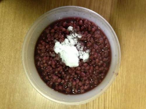 2红豆浸泡一晚,电压力锅煮熟,加白糖拌均匀
