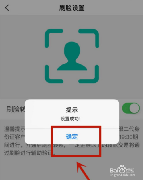 将刷脸转账后的按钮点击打开(仅限二代身份证客户开通刷脸转账功能)。