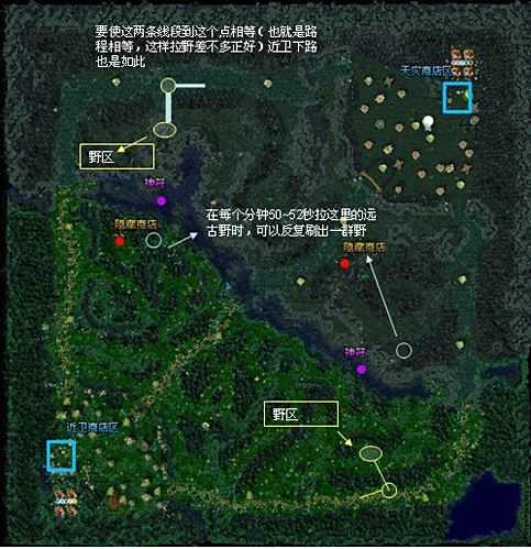 ⑥拉远古野,在50~52秒得时候攻击然后向野店的方向拉,可以堆好多野