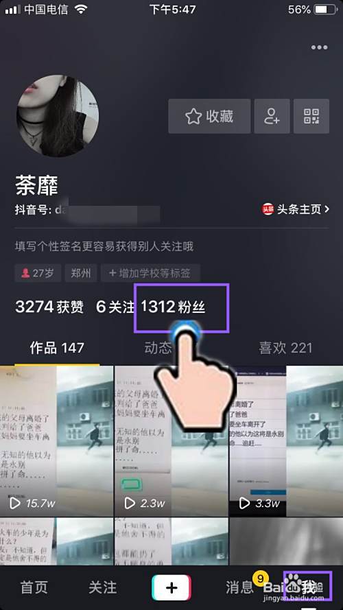 条件1. 抖音粉丝≥1000个用户以上,在哪里查看自己的粉丝数呢?打开APP,在【我的】页面查看,如下图所标识的位置,很明显。