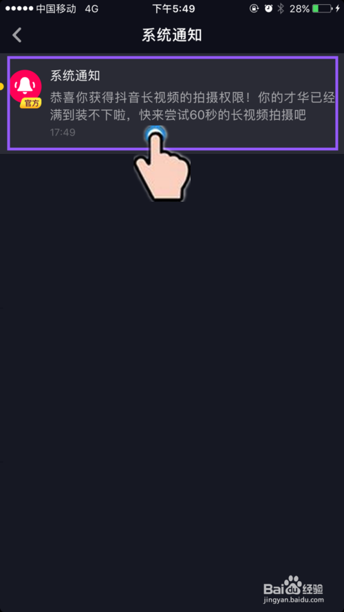 如果用户已经升级到新版本,当账号达到步骤一中所表述的两个条件,无需递交申请报告,系统会自动为账号开通拍摄长视频权限,用户主需要这样做:重启APP,然后在系统通知中查看是否收到长视频的开启通知,收到通知,即代表已经拥有拍摄长视频的权限了。
