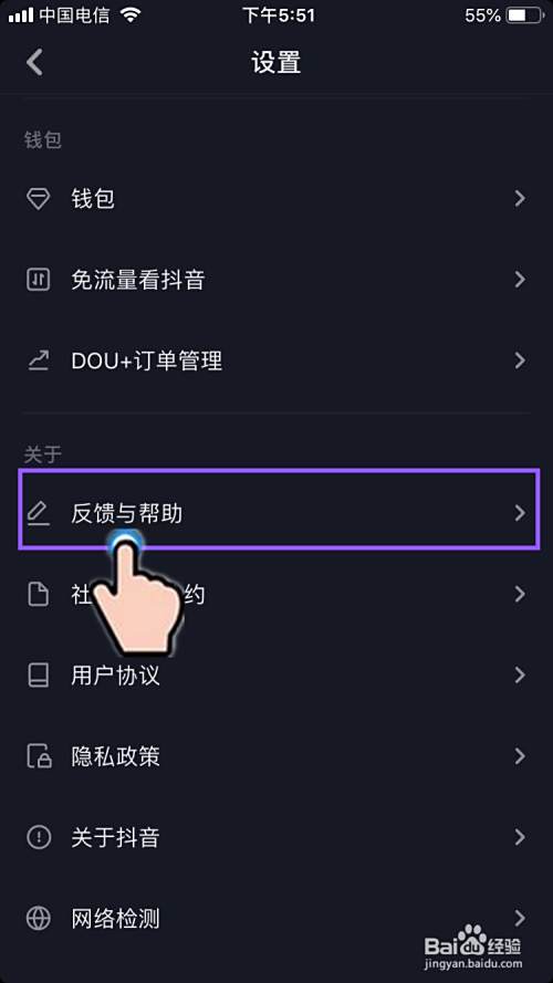 step2、在【设置】-【关于】-点击【反馈与帮助】,进入【我的反馈】页面。