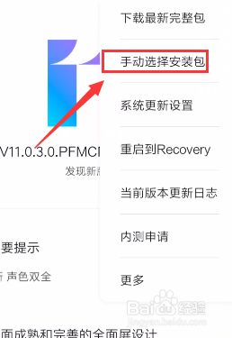 等待加载完成点击右上角的菜单选项,这个时候弹出菜单可以看到默认是没有手动选择安装包 提示的。