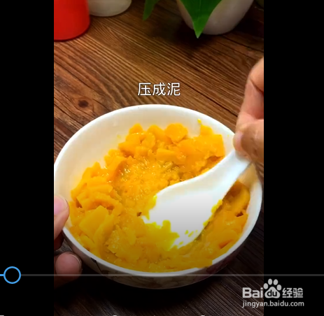第1步,把准备好的南瓜切片,上锅蒸熟压成泥,起锅烧油,放入葱姜蒜炒香,加入灯笼辣椒酱炒一下,虾南瓜泥翻炒一下,放入清水。