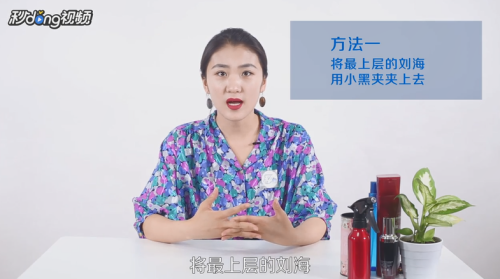 1将最上层的刘海用小黑夹夹上去,只留下最下层薄薄的一层。