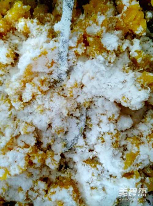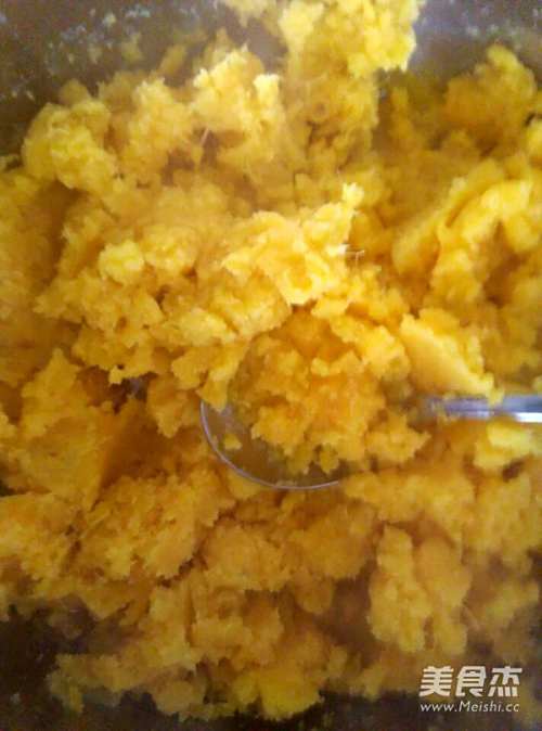 用勺子按成泥后撒些干淀粉,根据自己口味加淀粉,也可以加点白糖