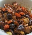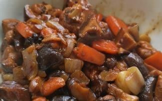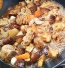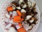 翻炒10分钟后,加入蘑菇,加入清水,加入老抽