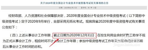 我们以2020年中级会计考试为例,工作年限的计算截止日期为“2020年12月31日”。