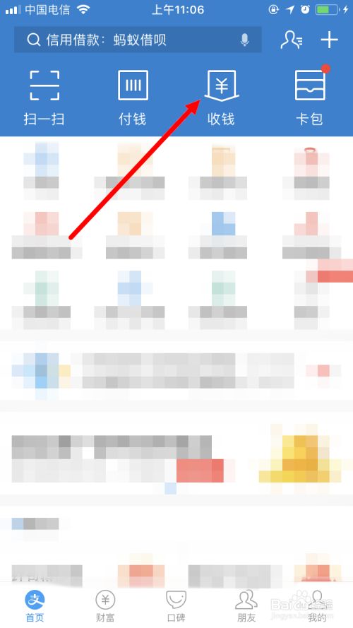 首先在手机上打开并登录支付宝App,并点击有页面的 收钱 。
