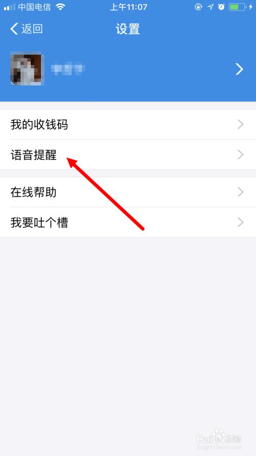 然后,在 设置 页面,点击 语音提醒 。