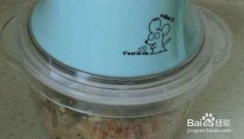用搅拌机把葱姜、鸡肉打成肉泥。