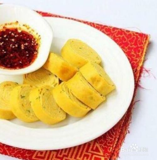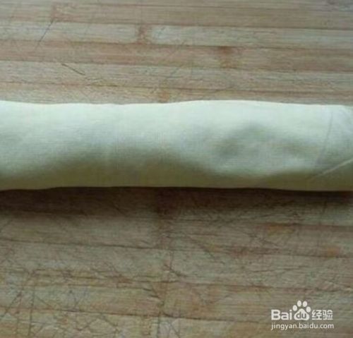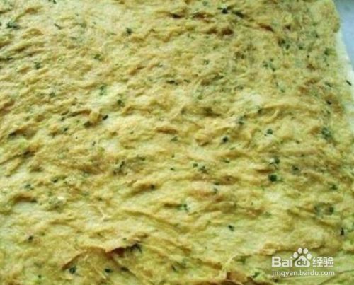 豆皮铺在菜板上,均匀地抹上肉泥,用手卷起来。