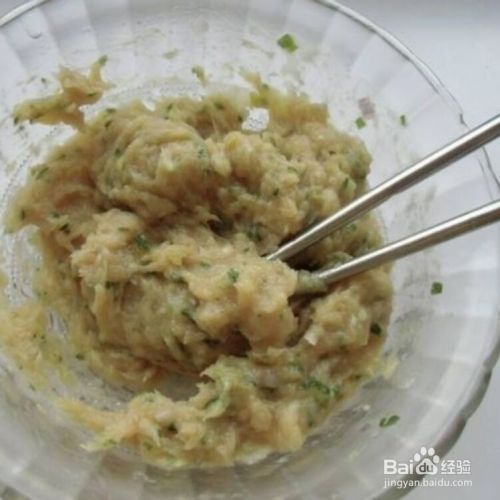 把高汤鲜,用水花开,打到鸡肉泥里,朝一个方向搅拌上劲。