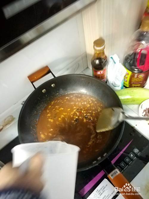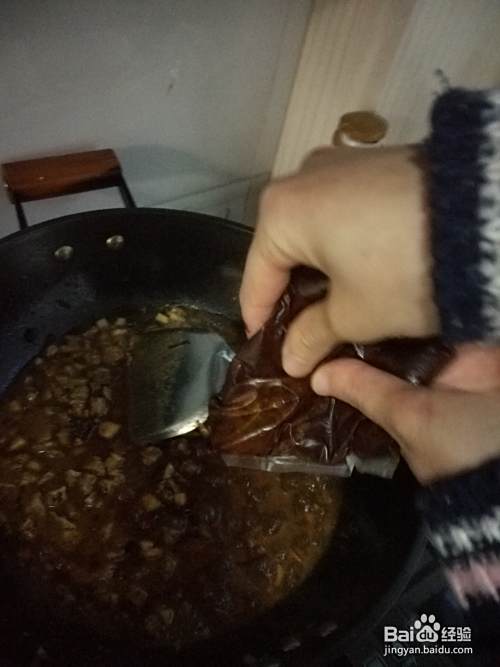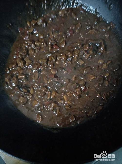 炒得差不多的时候,放入豆鼓和山药丁,豆鼓的作用就是增加酱的香味,翻炒1-2分钟左右,加入一碗冷水,然后烧开;加入豆瓣酱豆瓣酱的作用就显而易见了,完成可以让做出来的牛肉酱更加香浓;